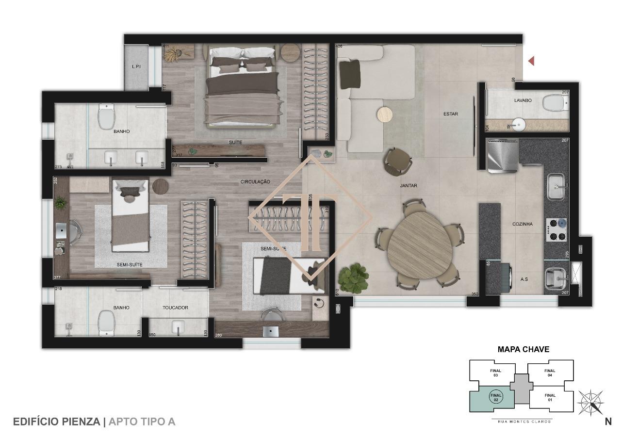 Com dois elevadores, infraestrutura moderna e acabamento de alto padrão, o Pienza alia praticidade e sofisticação em cada detalhe. A previsão de entrega é para outubro de 2028, sendo uma excelente oportunidade tanto para morar quanto para investir em uma das regiões mais valorizadas de Belo Horizonte.