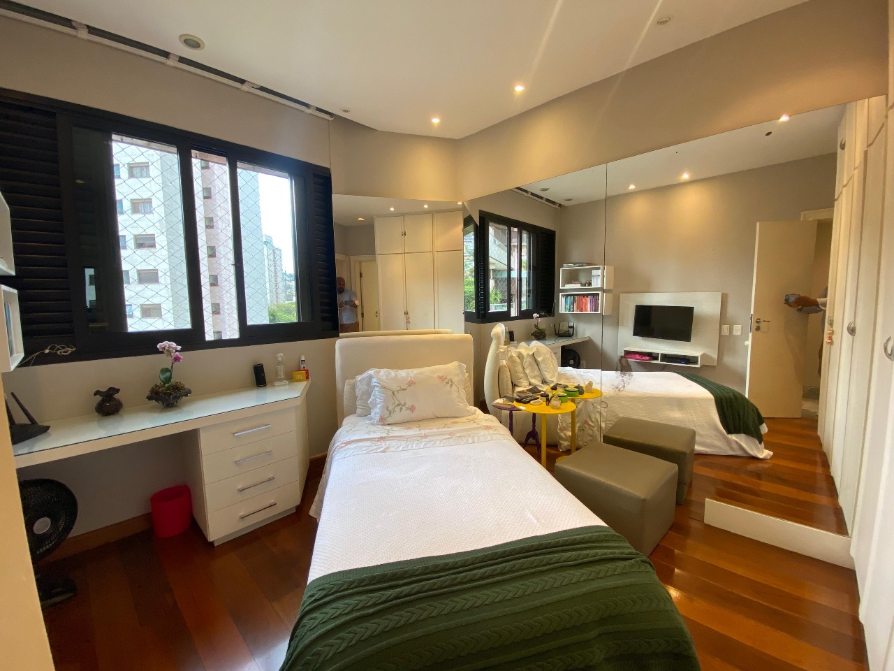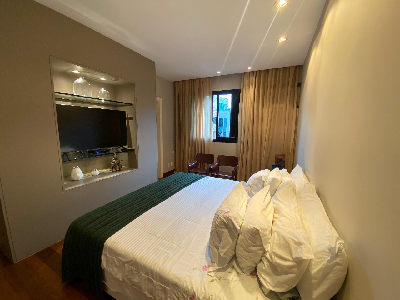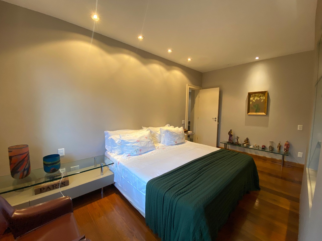 . 4 quartos sendo 4 suítes com piso em tábua corrida, armários;