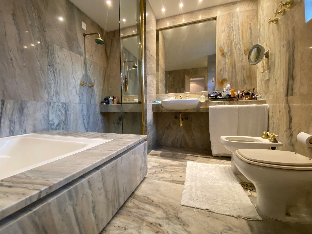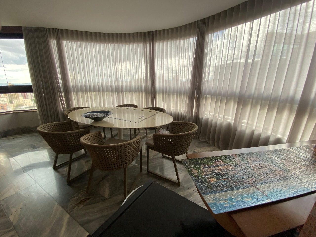 . Sala para 3 ambientes com piso em mármore;